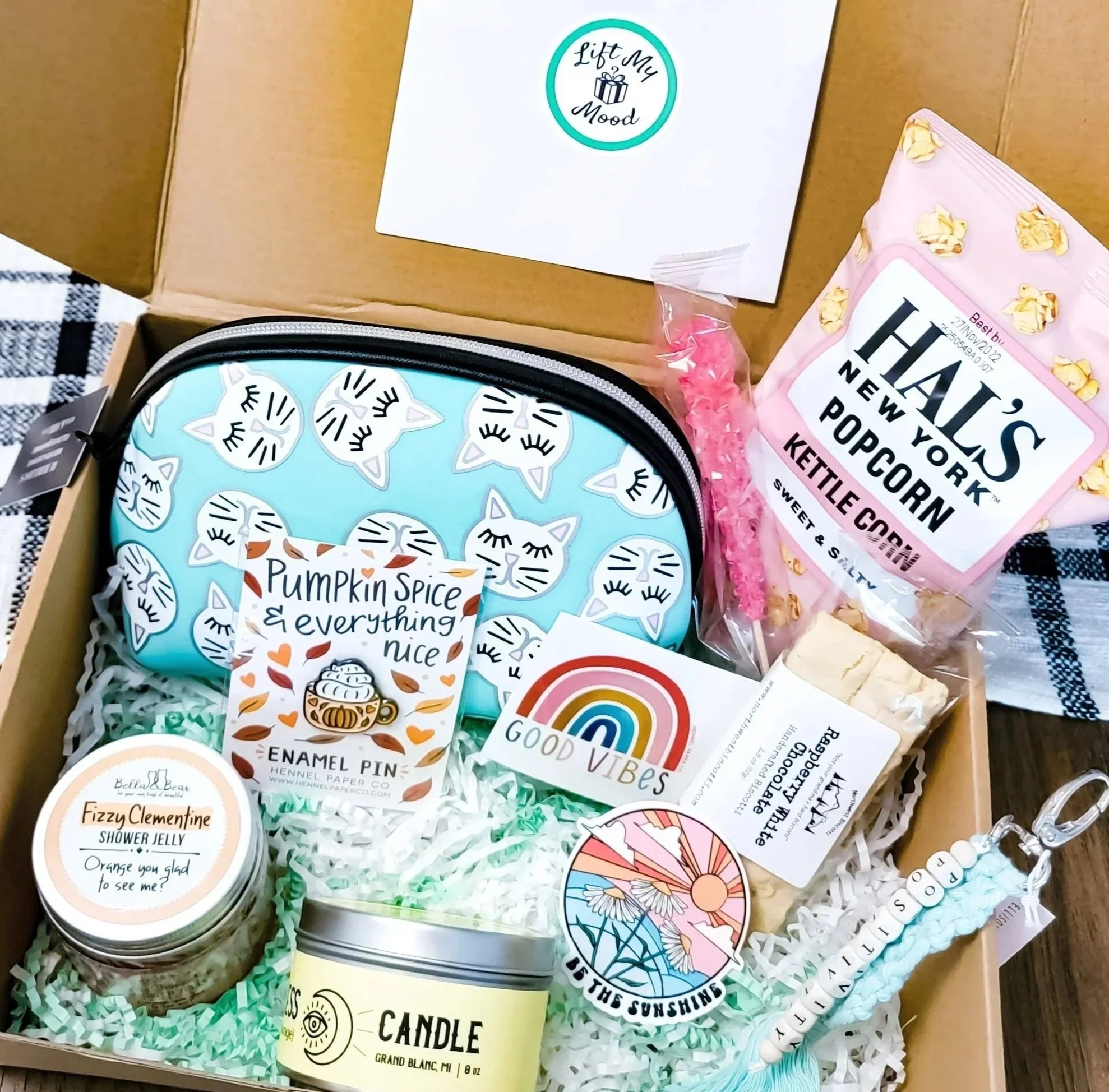 You tell us what makes you smile. We put together a 100% Personalized Mystery Box or Basket just for you! We shop for the perfect items, offer to wrap them individually & add personalized touches to lift your mood! :)
